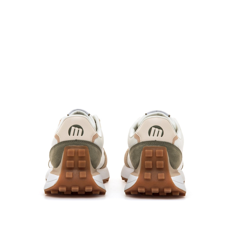 Zapatillas urban Mustang zinc blancas y beige con detalles verdes y suela tipo trail