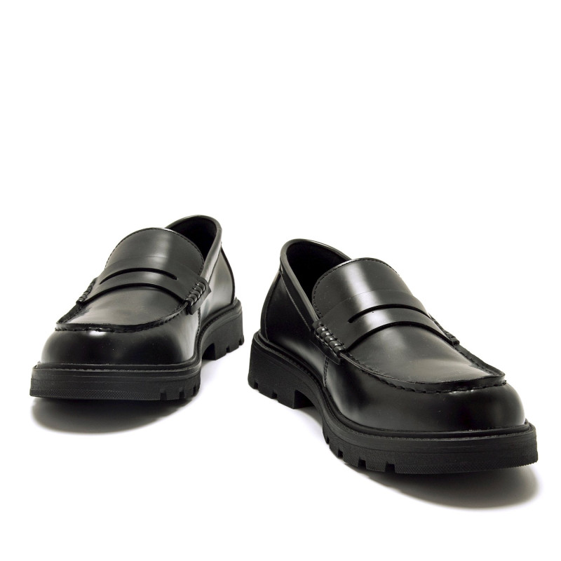 Mocasín de color negro para hombre, modelo Candem de la marca Mtng. Su diseño sin cordones y con antifaz frontal aporta un toque clásico renovado, ideal para quienes buscan comodidad sin renunciar al estilo. La suela gruesa con relieve mejora la trac