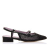Zapatos planos destalonados para mujer, modelo Puglia de color crema de la marca Mariamare. Este diseño combina una estructura de malla que aporta frescura y ligereza con detalles brillantes. La punta afilada y la correa ajustable en el empeine añade