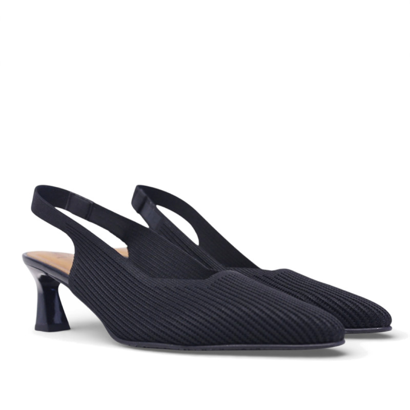 Estos salones destalonados para mujer presentan un estilo atemporal y elegante, ideales para combinar con looks formales o más actuales. Incorporan punta cuadrada y un tacón geométrico de 5,5 cm, que aporta altura con buena estabilidad. Están fabricados en tejido ECO-elástico ajustable PET en color negro, adaptándose al pie para ofrecer mayor confort. Incluyen tecnología Adaptative Style, sin componentes de origen animal, pensada para proporcionar comodidad durante todo el día. Un modelo que une tendencia, ligereza y bienestar, además de estar fabricado en España con materiales responsables.